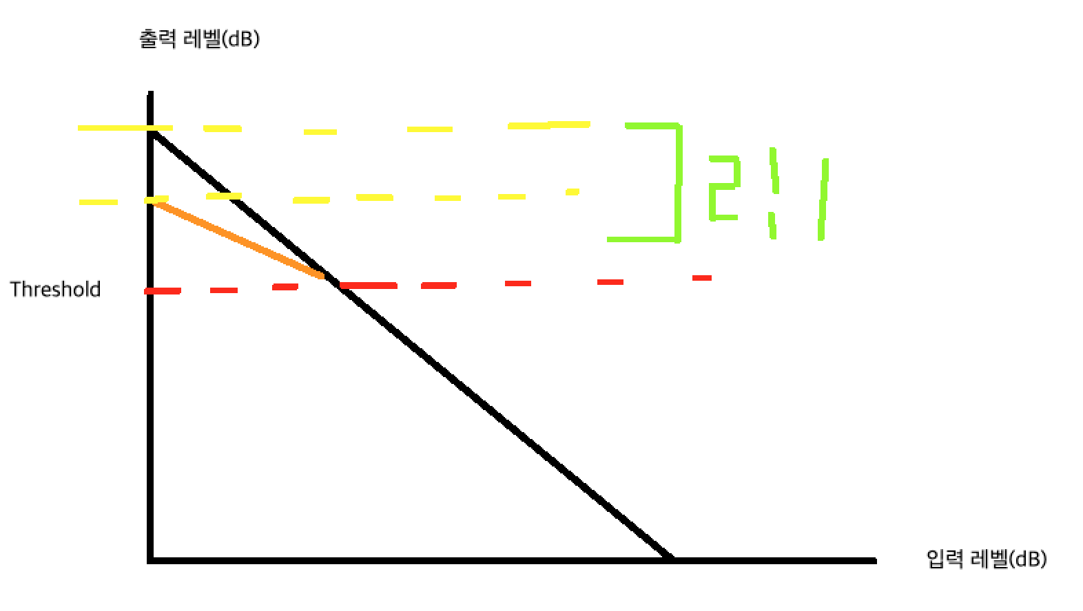 Threshold : 컴프레가 걸리는 기준점을 나타낸다.