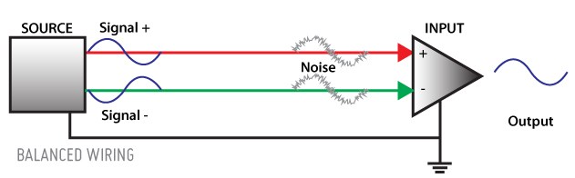Balanced 방식은 케이블 처럼 신호선이 + 신호의 위상을 뒤집은 선 + 접지선으로