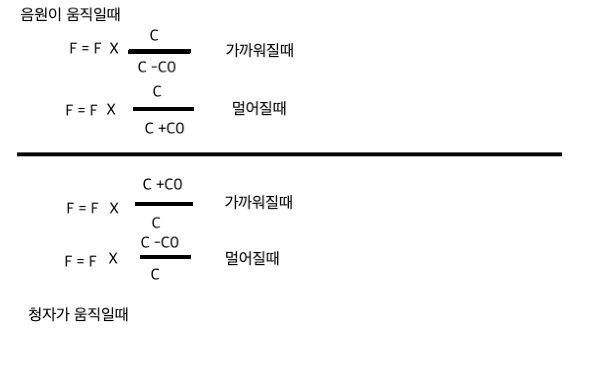 듣는 사람이 움직이던 음원이 움직이던 음원과 듣는 사람이 가까워 지면 피치가 올라가는 것으로 들리고