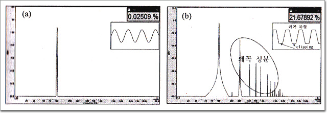 이때 잔존하는 하모닉 성분만 측정하여 사인파와의 비율을 표시하게 되며