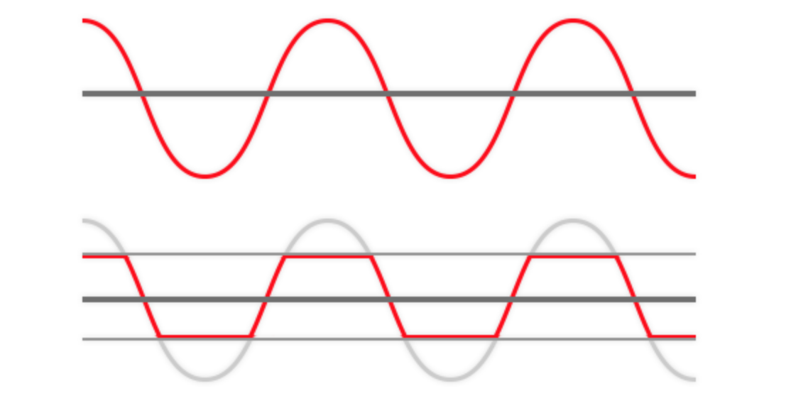 왜곡이란 위의 이미지와 같이 음향기기의 입력 한계 이상의 신호가