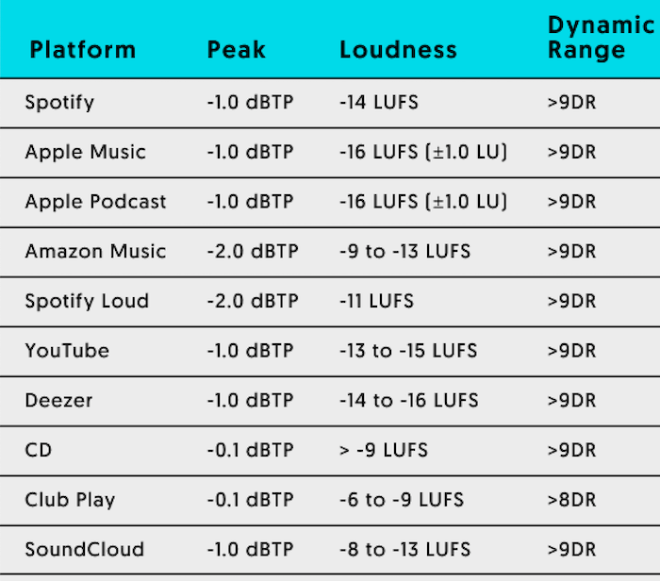 대부분은 플렛폼마다 LUFS는 정해져있습니다.
