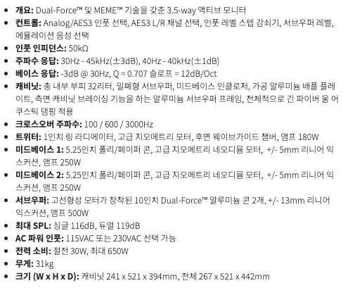 다만 제조사에 따라 유효한 재생 주파수 범위를 일반적으로 10db 감소하는 주파수를