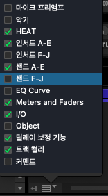 체크가 되어 있는 항목은 믹스 윈도우에 표시되는 항목입니다.