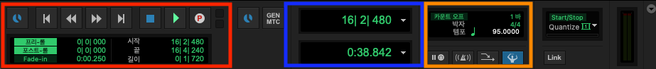 크게 Transport Controls(트랜스포트 컨트롤스), Counters(카운터스), MIDI Controls(미디 컨트롤스)