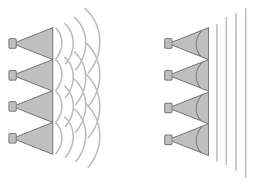 의한 음색 왜곡을 최소화할 수 있다는 것이며 포인트 소스 스피커와 비교해 캐비닛 당 많은 수의 스피커 드라이버를 사용하기 때문에