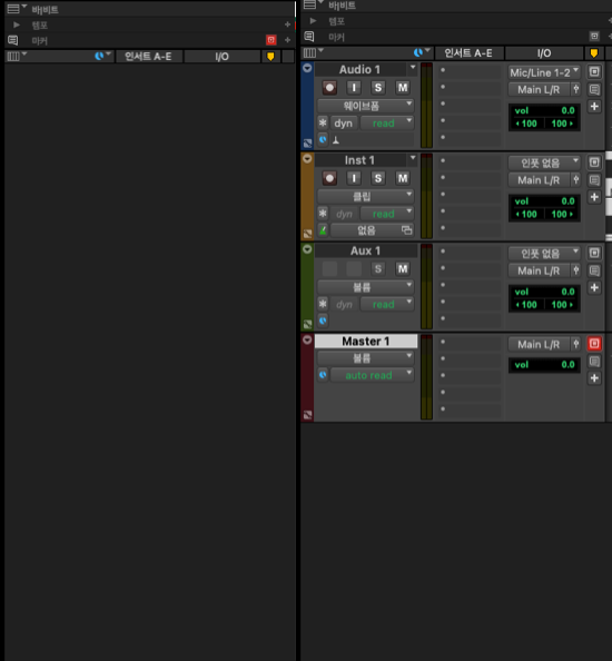 (참고 프로툴스는 다른 시퀀서들과 다르게 동일한 트랙 이름을 만들 수 없기 때문에 반드시 다른 이름으로 지정해야 한다)
