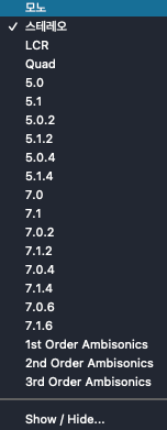 Mono/Stereo 변경 : Command + 방향키 좌/우