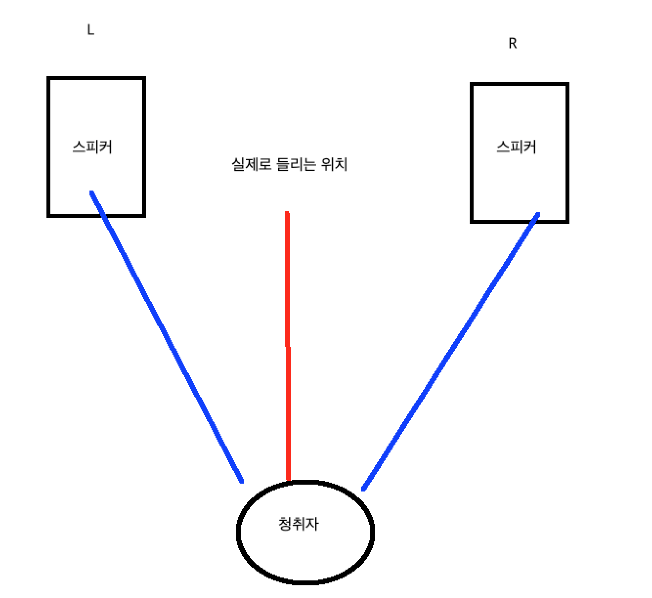 요약을 하면 같은소리가 동시에 L 과 R에서 소리가 나서 소리는 중간에서 들리지만 소리에 입체감이 없는